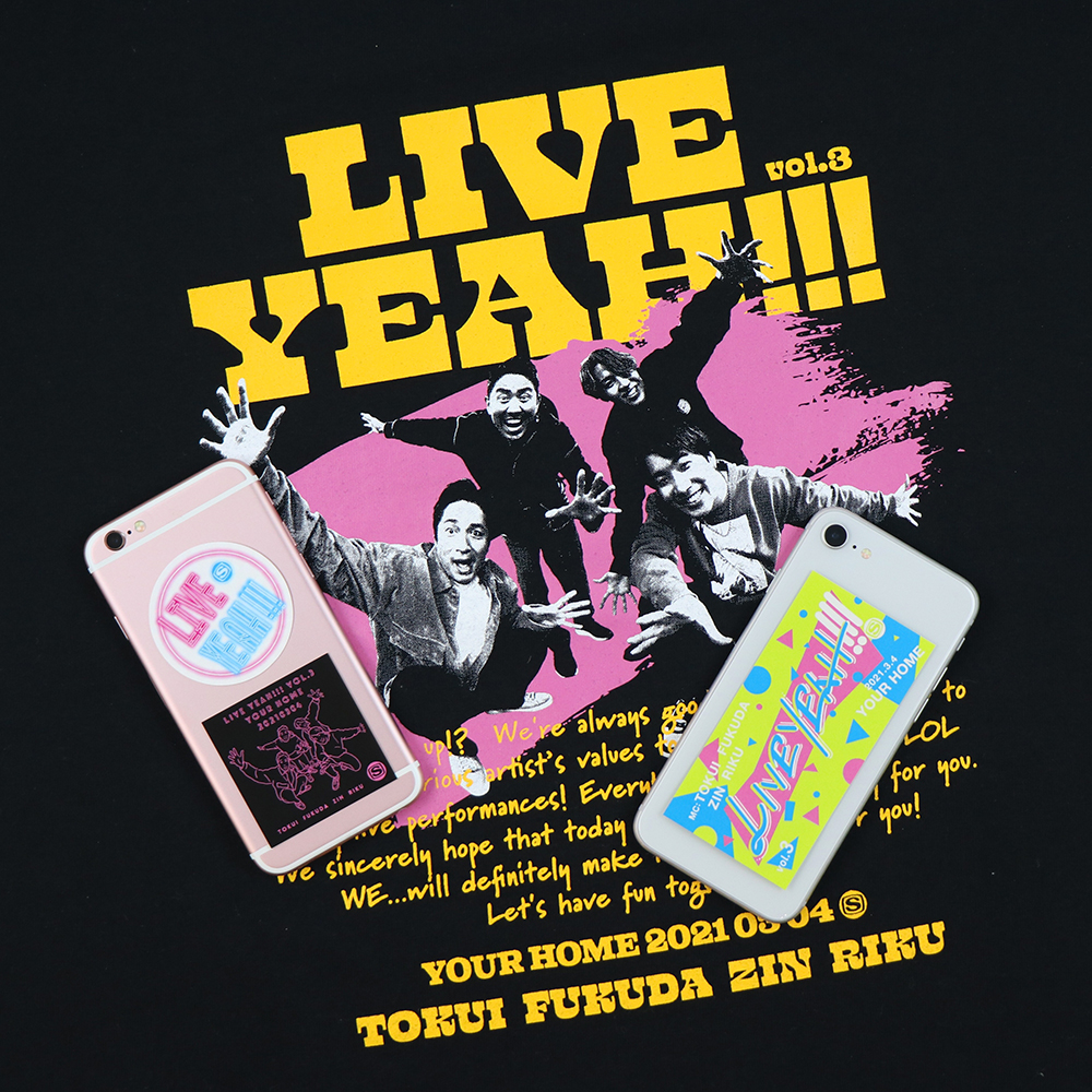 『LIVE YEAH!!! vol.3』Tシャツ、タオル、ステッカーセット 『LIVE YEAH!!! vol.3』 Tシャツ、タオル、ステッカーセット CATEGORIES グッズ TAGS SHARE on Twitter Facebook LINE BACK